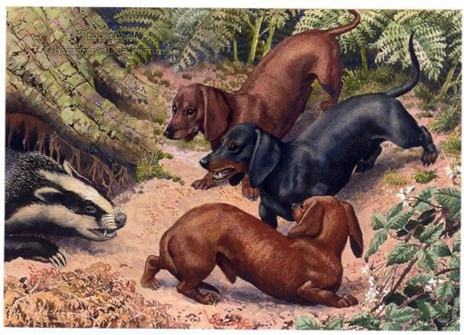 ドイツ南部や中部の森林地帯では、アナグマの被害を防ぐため、猟師たちがダックスフンドを日常的に使っていた記録があります。